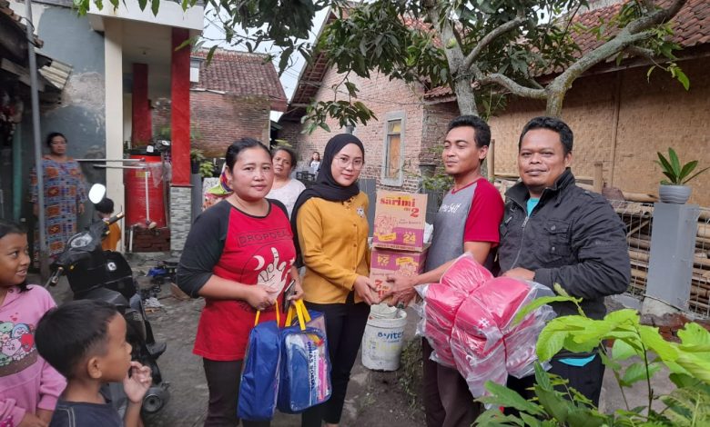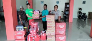 Nampak aparatur Pemerintah Desa kandang Mukti kembali terjun ke lokasi guna, langsung membagikan bansos bagi sejumlah warga yang terdampak,
