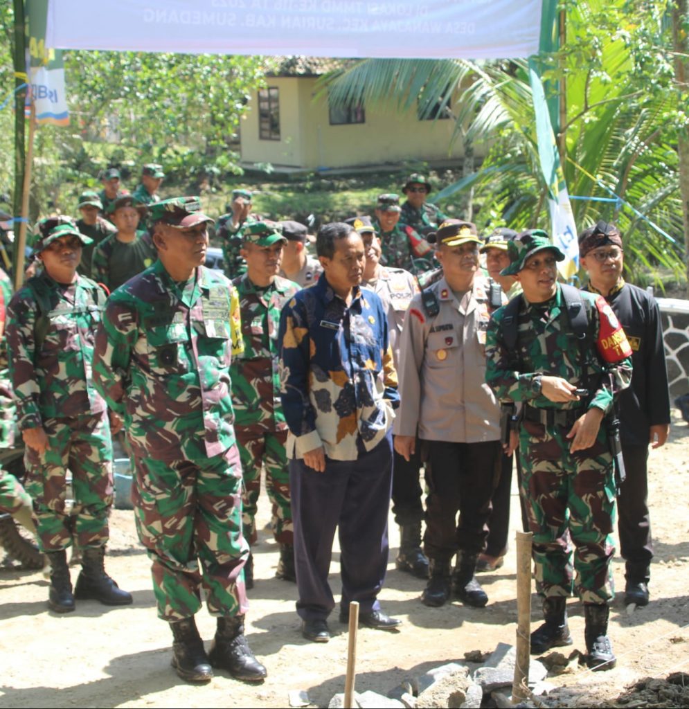 MP Surian Rudi Herlambang, Kades Wanajaya Erwan Riswanto S.E, Batih Ter Kodim Serma Budiansyah, Babinsa Desa Wanajaya Serda Deni Romadni, Babinkantibmas Wanajaya, Anggota Satgas TMMD, GM FKPPI, dan warga masyarakat setempat.