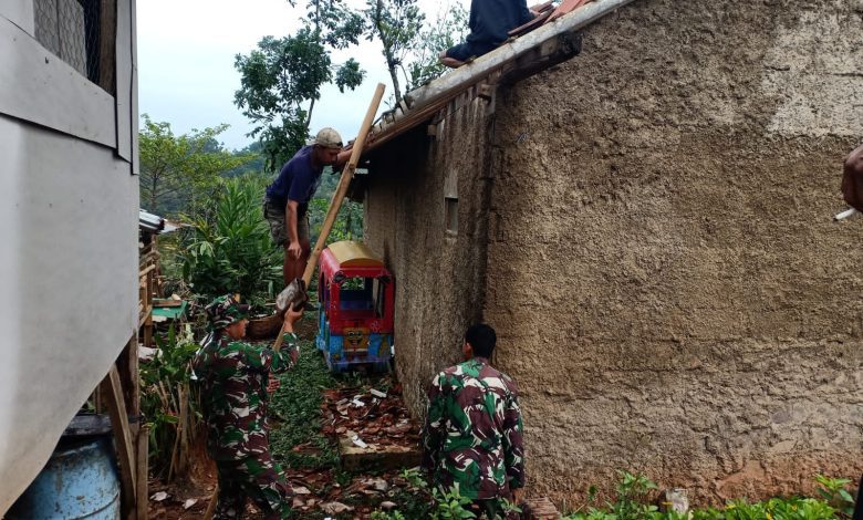 FAJARNUSANTARA.COM- Pasukan TNI dari Koramil 1004 Tanjungsari, Kodim 0610, bersama Polsek Pamulihan Sumedang turun langsung ke lapangan setelah bencana angin puting beliung melanda Desa Cijeruk pada Jumat Siang (24/11/2023).