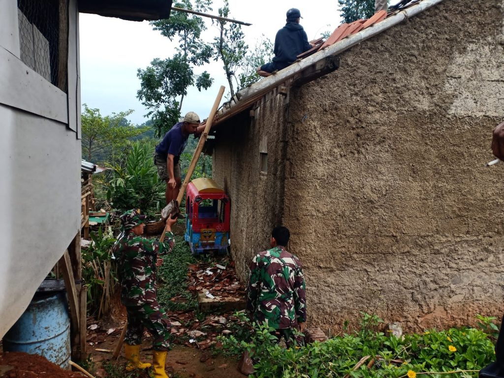 FAJARNUSANTARA.COM- Pasukan TNI dari Koramil 1004 Tanjungsari, Kodim 0610, bersama Polsek Pamulihan Sumedang turun langsung ke lapangan setelah bencana angin puting beliung melanda Desa Cijeruk pada Jumat Siang (24/11/2023).