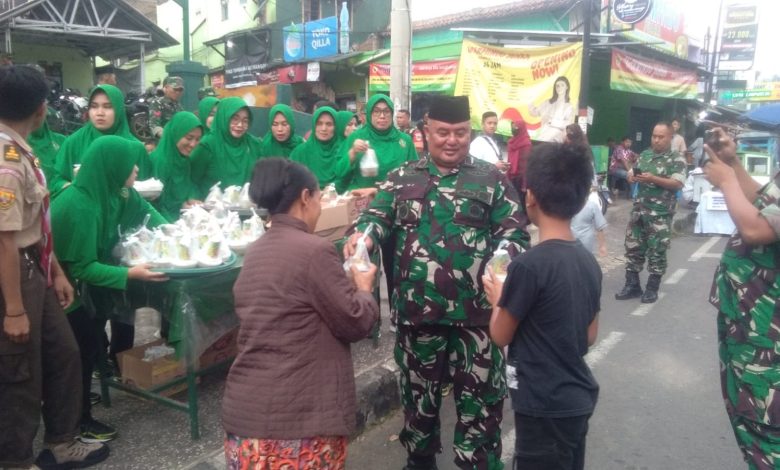 FAJARNUSANTARA.COM- Danramil 1005/Jatinangor Kodim 0610/Sumedang, Kapten Inf Dadang Sopyan, bersama anggota, menyelenggarakan kegiatan bagi-bagi takjil kepada warga yang melintas di jalan, tepatnya di depan Makoramil 1005/Jtr Dusun Gentramanah Rt 3 Rw 2 Desa Hegarmanah Kecamatan Jatinangor pada Senin (25/03/2024).