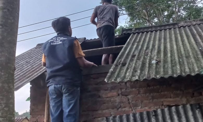 Tokoh Pemuda Kecamatan Paseh, Dadan mengatakan, angin kencang selama kurang lebih dua jam membuat sejumlah pohon dan asbes beserta beberapa atap rumah warga beterbangan dan rusak, Jum’at (13/1/2023).