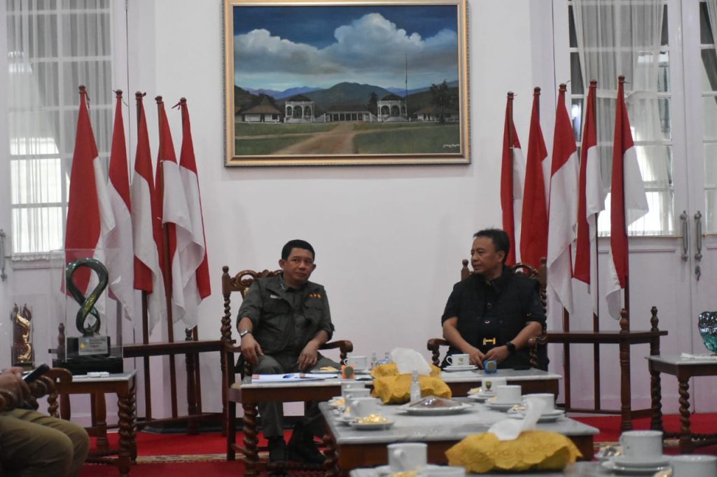 Pj Bupati Sumedang, Herman Suryatman, menerima Suhariyanto di Gedung Negara pada Senin (1/1/2023).
