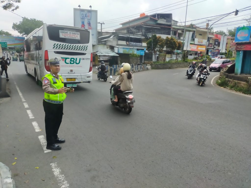 Kegiatan pengaturan lalu lintas ini merupakan salah satu tugas rutin yang dilaksanakan oleh anggota Polri dalam rangka menciptakan kondisi yang aman dan tertib.