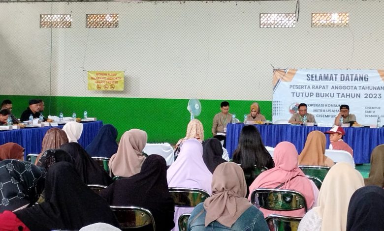 FAJARNUSANTARA.COM- Koperasi Konsumen Mitra Usaha Cisempur menggelar Rapat Anggota Tahunan (RAT) Tutup buku tahun 2023 dengan meriah. Acara yang dilaksanakan di GOR Futsal Bima, jalan Cipajaran-Baturumpil, Desa Cisempur, Kecamatan Jatinangor, Kabupaten Sumedang, dimulai pukul 09.30 WIB pada Sabtu, 2 Maret 2024.