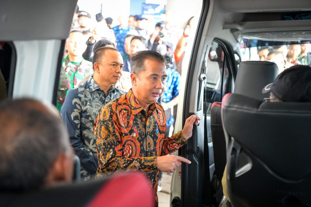 FAJARNUSANTARA.COM- Penjabat (Pj.) Gubernur Jawa Barat, Bey Machmudin, resmi meluncurkan Layanan Angkutan Antarmoda menuju Bandar Udara Internasional Jawa Barat (BIJB) Kertajati. cara berlangsung di Area Kedatangan BIJB Kertajati, Kabupaten Majalengka, pada Jumat (1/12/2023).
