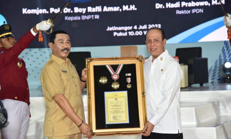 FAJARNUSANTARA.COM, SUMEDANG – Potensi ancaman terorisme di Indonesia menempati urutan ke- 24 dari 162 negara menurut Global Terrorism Index (GTI) 2022. Hal ini disampaikan Kepala Badan Nasional Penanggulangan Terorisme (BNPT), Komjen Pol. Dr. Boy Rafli Amar, M.H saat mengisi stadium general di Kampus IPDN Jatinangor.