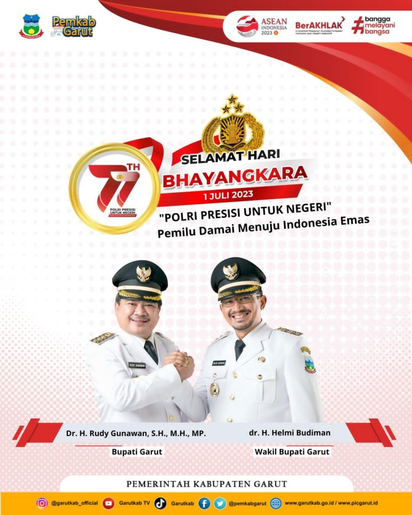 FAJARNUSANTARA.COM,- Dalam rangka merayakan Hari Ulang Tahun (HUT) Bhayangkara yang ke-77 pada tahun 2023, Bupati Garut, Rudi Gunawan, menyampaikan ucapan selamat secara khusus kepada Polres Garut.