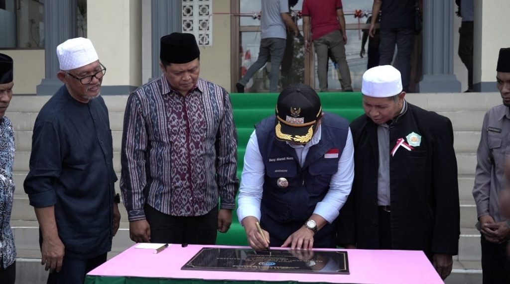 Dalam kesempatan tersebut, Bupati menyatakan kagumnya terhadap bangunan mesjid yang tegak kokoh dengan dua lantai, dan lokasinya yang sangat strategis untuk beribadah berjamaah.