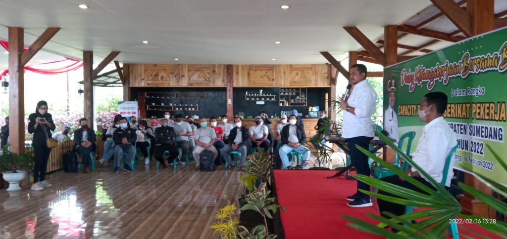 SUMEDANG – Puluhan Pentolan Organisasi Buruh/Serikat Pekerja di Kabupaten Sumedang yakni GOBSI, PPB KASBI, PEPPSI, SPN, dan KSPN, mengikuti Capacity Building Serikat Pekerja/ Serikat Buruh Kabupaten Sumedang di pesona taman puspa. Rabu (16/02).