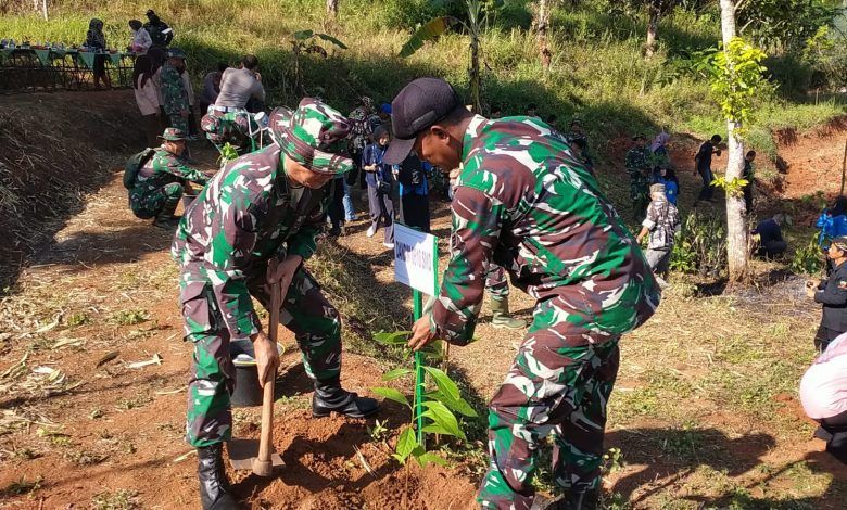 FAJARNUSANTARA.COM,- Komando Distrik Militer 0610/Sumedang menggelar program pembinaan lingkungan hidup dengan fokus pada kegiatan penghijaun.tanggal 1 Agustus 2023.