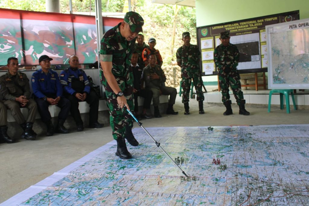 Sumedang,- Dandim 0610/Sumedang Letkol memberikan perintah operasi kepada Peserta Latihan Intel Teritorial dan Tempur Terintegrasi Tahun 2022 Di Wilayah Jatigede Komplex.