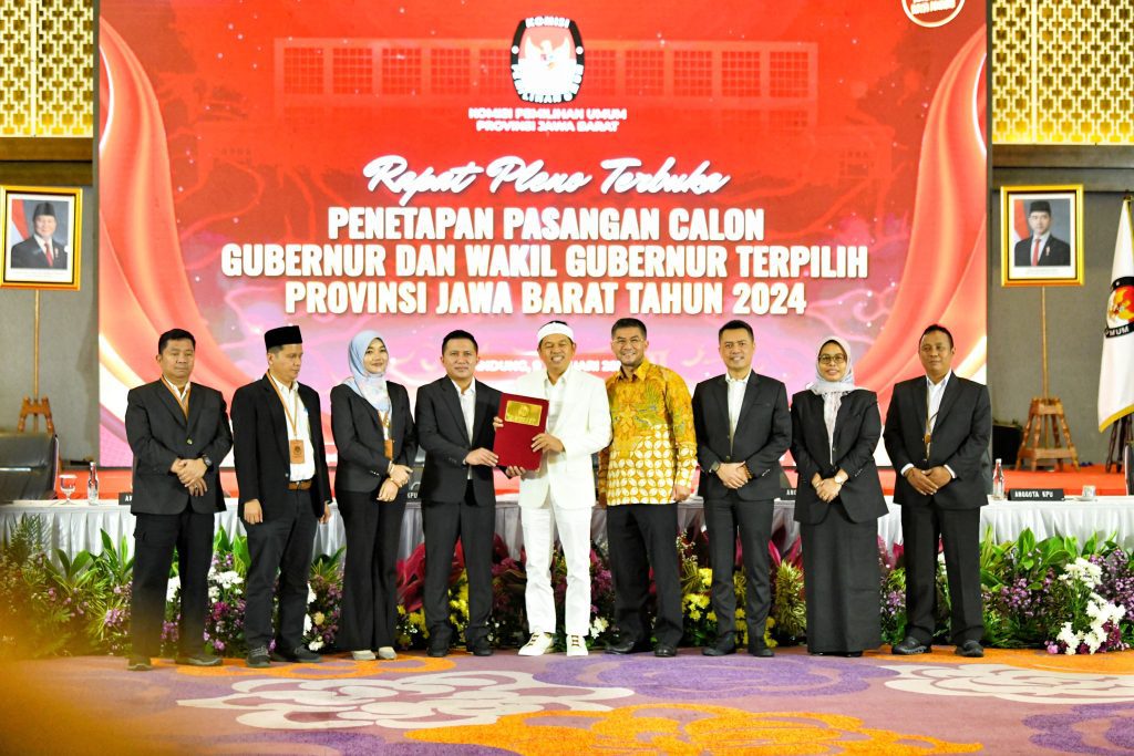 FAJARNUSANTARA.COM– Komisi Pemilihan Umum (KPU) Jawa Barat resmi menetapkan pasangan Dedi Mulyadi dan Erwan Setiawan sebagai Gubernur dan Wakil Gubernur Jawa Barat terpilih. Penetapan tersebut dilakukan dalam Rapat Pleno di Hotel Grand Mercure Bandung Setiabudi, Kota Bandung, pada Kamis (9/1/2025).