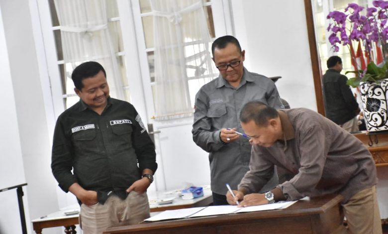Penandatanganan naskah perjanjian hibah daerah (NPHD) dilakukan Kepala Badan Kesbangpol H Asep Tatang Sujana bersama para pimpinan Parpol dengan disaksikan Bupati Sumedang H. Dony Ahmad Munir, di Gedung Negara, Selasa (14/6/2022).