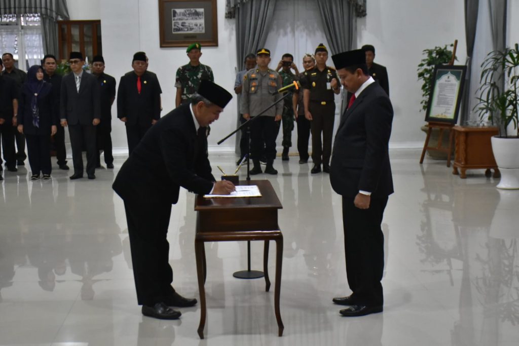 FAJARNUSANTARA.COM,- Bupati Sumedang, Dony Ahmad Munir, melantik delapan Pejabat Tinggi Pratama (Eselon II) yang mengalami rotasi jabatan. Pelantikan dan pengambilan sumpah jabatan dilakukan di Gedung Negara pada Kamis (27/4).