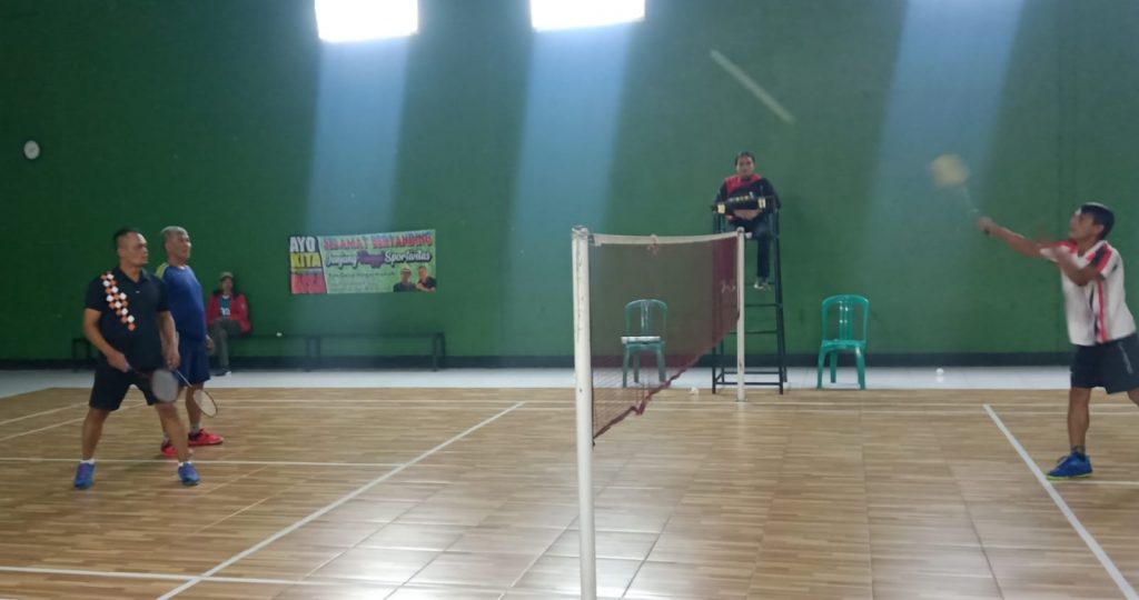 Pertandingan Final Bulu Tangkis Doble Antara Desa Hegarmanah Asep Sulaeman (Akris) dan Ahmad Suparman Versus Desa Jatimukti, Mamat dan Yono dalam pantauan wartawan fajarnusantara.com, berlangsung tiga set.