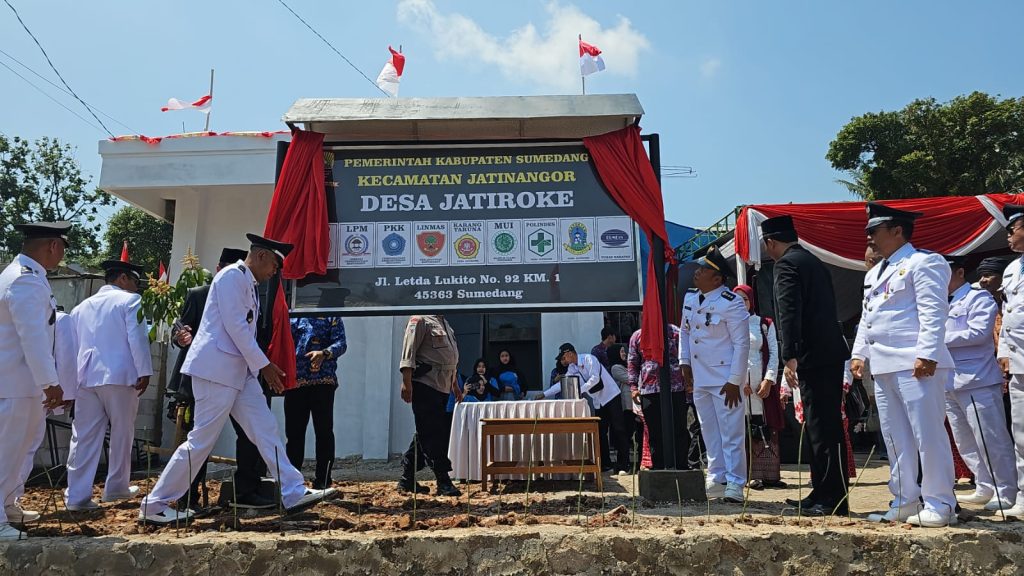FAJARNUSANTARA.COM — Desa Jatiroke, Kecamatan Jatinangor, kini resmi memiliki kantor desa baru yang lebih representatif dan strategis. Peresmian dilakukan di lingkungan RT 04 RW 06 Dusun Jatisari, tepat di pinggir jalan utama Jatiroke–Cikuda, dan dihadiri unsur pemerintahan desa, kecamatan, hingga anggota DPRD Kabupaten Sumedang.