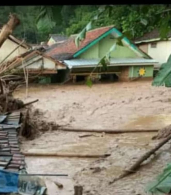 FAJARNUSANTARA.COM,-SUMEDANG,- Banjir Bandang Melanda Desa Sawahdadap 8 rumah warga diterjang lumpur yang dibawa arus air dari kaki gunung geulis.