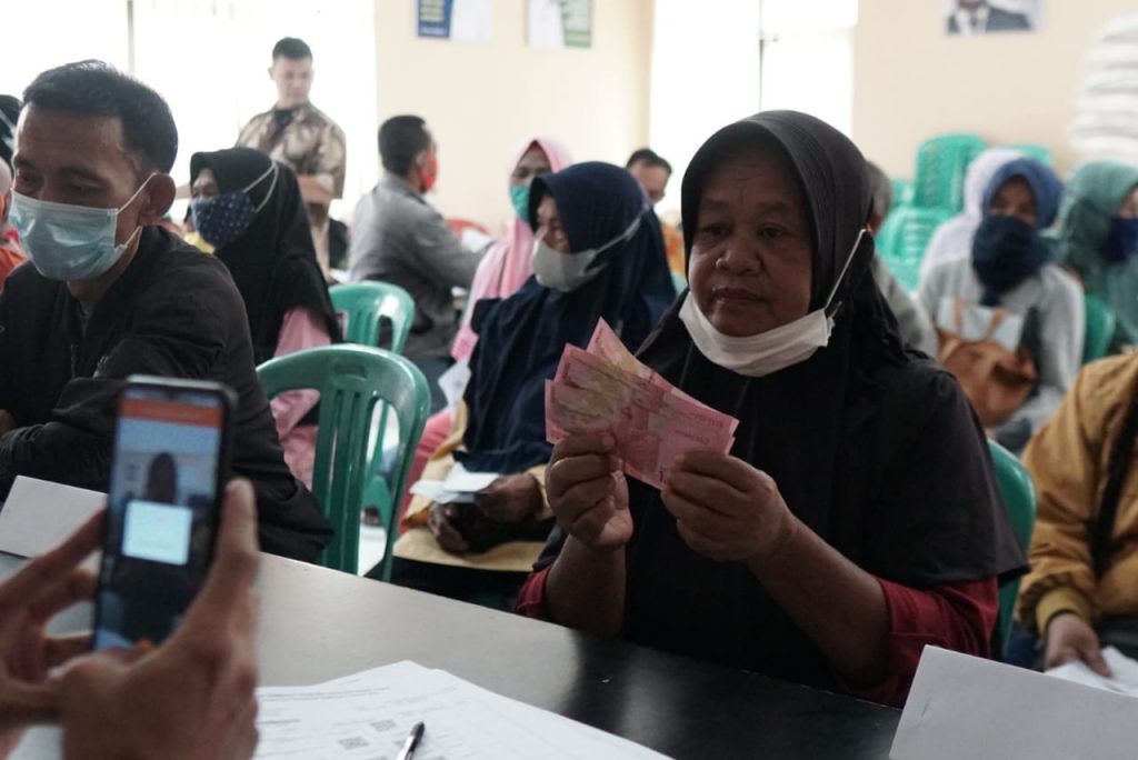 Sebanyak 484 Keluarga Penerima Manfaat menerima BSP di Kantor Desa Sukajaya, Kamis (24/2).