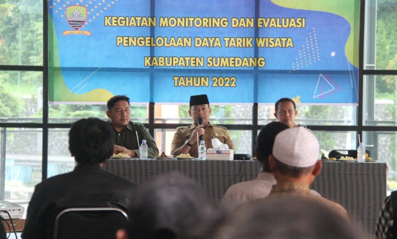 FAJARNUSANTARA.COM, SUMEDANG – Kepala Disparbudpora Bambang Rianto, S.STP., M.Si. membuka pelaksanaan kegiatan monitoring dan evaluasi pengelolaan daya tarik wisata Kabupaten Sumedang berupa Pembinaan Pengembangan dan Pengelolaan Usaha Jasa Pariwisata. Senin, 30 Mei 2022.