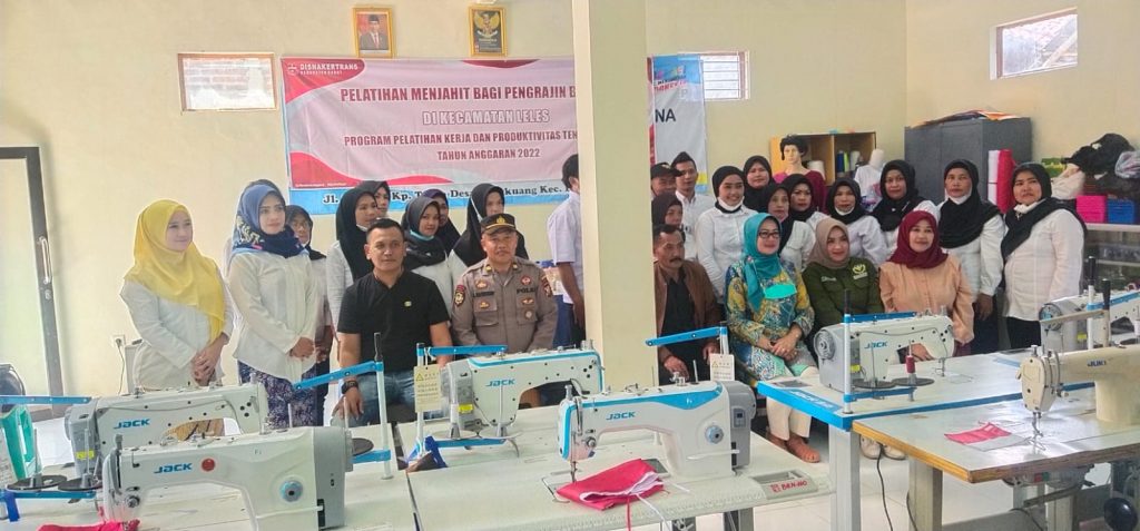 Kerjasama pelatihan dibangun bersama Disnakertrans Kabupaten Garut dan LPK gelar pelatihan bagi para pengrajin bendera yang berlokasj di jalan Cikijing Desa Cangkuang, nampak hadir Kadisnakertrans Garut Ibu Ema Sugrti, Ketua Asosiasi pengusaha pengarajin Bendera Merah Putih Ramdan Jaelani, Ketua Apdesi Kecamatan Leles H.Anas, Ketual LPK Ibu. Yani, Kapolsek Leles yang mewakilinya.