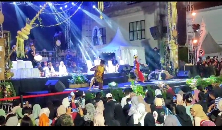FAJARNUSANTARA.COM – Pertunjukan Drama Musikal Cikeruhan dari perwakilan Sumedang Barat membuka peringatan Hari Jadi Sumedang ke-448 dengan suasana khidmat. Tarian yang dibawakan Lingkung Seni Reak Putra Pewaris Desa Cikeruh bersama Sundawani DPC Jatinangor ini sukses mengubah riuh penonton menjadi hening dan penuh penghayatan.