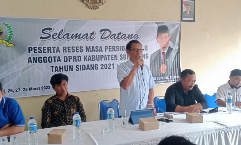 Anggota DPRD Sumedang Dr. Dudi Supardi gelar Reses masa persidangan II Anggota di Aula Desa Cibeusi Kecamatan Jatinangor Kabupaten Sumedang. Sabtu (26/03).