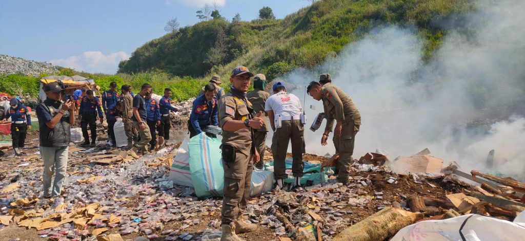 “Oleh sebab itu, saya bersama Kabid Tibumtranmas Satpol PP Sumedang, Hilman Abdullah, melihat langsung proses pemusnahan rokok ilegal di Tempat Pembuangan Akhir Sampah (TPAS) Cibeureum,” lanjutnya.