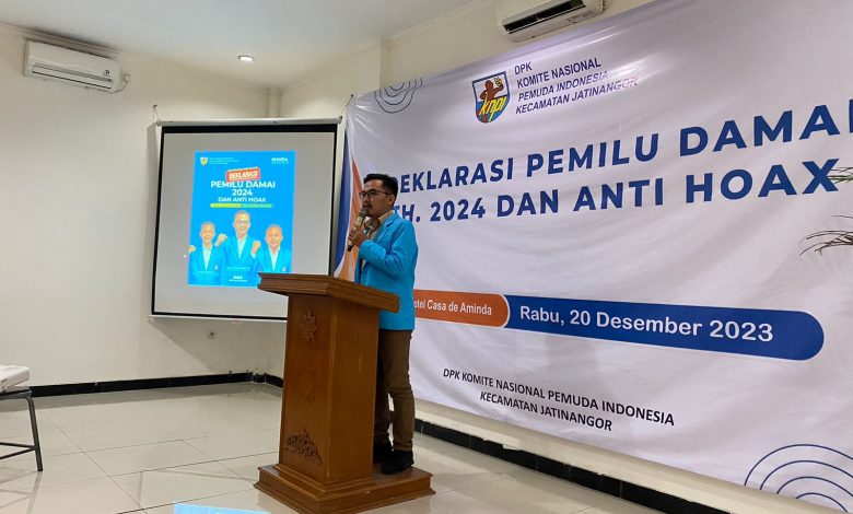 Risko menegaskan pentingnya Deklarasi damai dan anti hoax yang diusung KNPI Jatinangor sebagai upaya menyatukan seluruh elemen organisasi masyarakat dan kepemudaan dalam menyongsong pesta demokrasi tahun 2024.