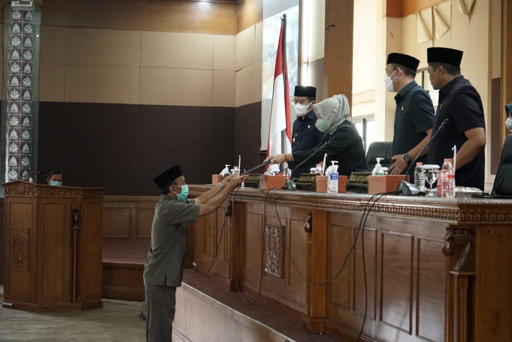 Rapat Paripurna dipimpin oleh Wakil Ketua DPRD Sumedang Titus Diah, dihadiri Wakil Ketua DPRD lainnya Jajang Heryana, S.E dan H. Ilmawan Muhamad, S.Ag beserta Anggota Dewan yang hadir secara langsung maupun virtual.
