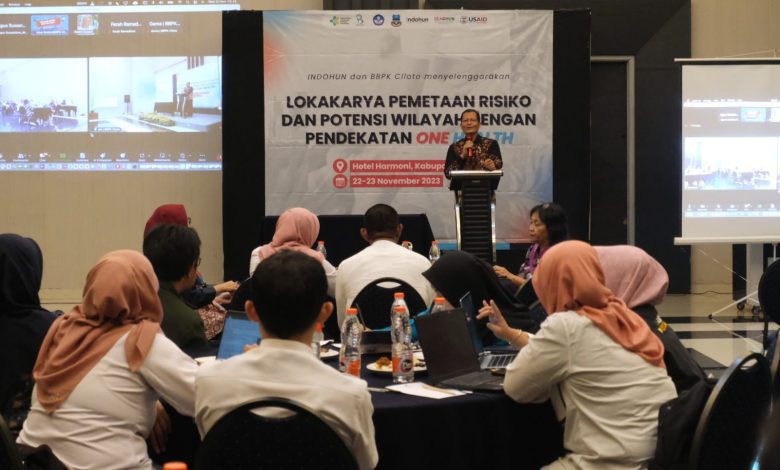 Acara tersebut dilakukan dalam Lokakarya Pemetaan Risiko dan Potensi Wilayah dengan Pendekatan One Health pada Rabu (22/11/2023), di Ballroom Hotel Harmoni, Jalan Cipanas Baru, Kecamatan Tarogong Kidul, Kabupaten Garut.
