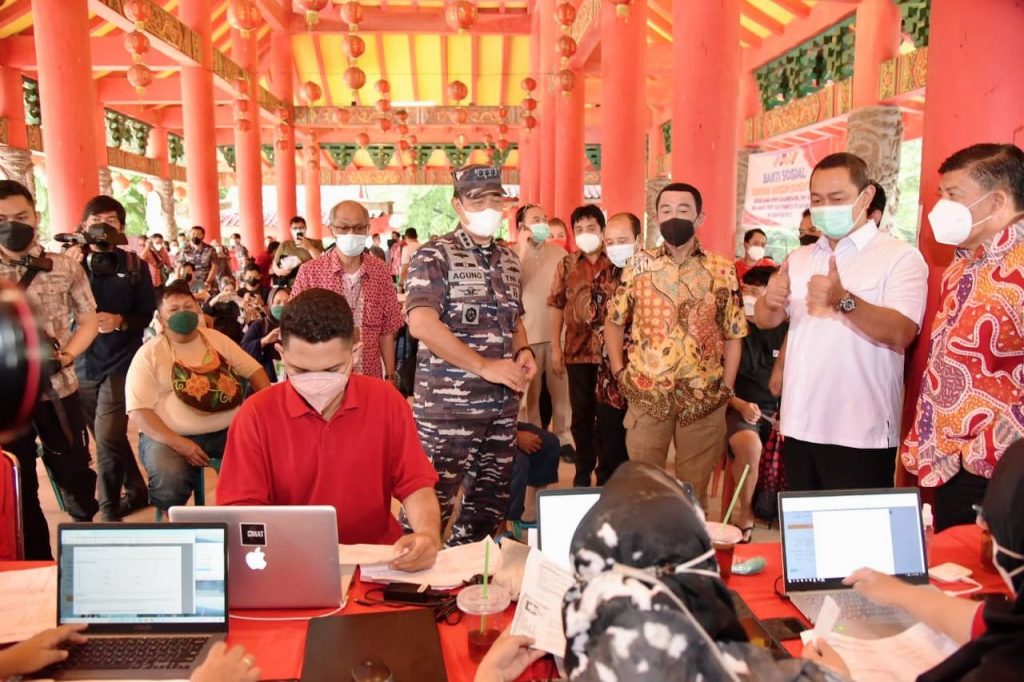 Rektor IPDN Hadi Prabowo didampingi oleh Kadiskesal Laksamana Pertama Agus Guntoro dan Kasubdiskesprev Dikesal Kolonel Laut (K) drg. Agung Mai Setiana dari TNI AL serta Walikota Semarang Dr. Hendrar Prihadi, S.E., M.M dan Wakil Walikota Ir. Hj. Hevearita Gunaryanti Rahayu terjun langsung ke titik pertama pelaksanaan vaksinasi yakni Klenteng Sam Poo Kong.