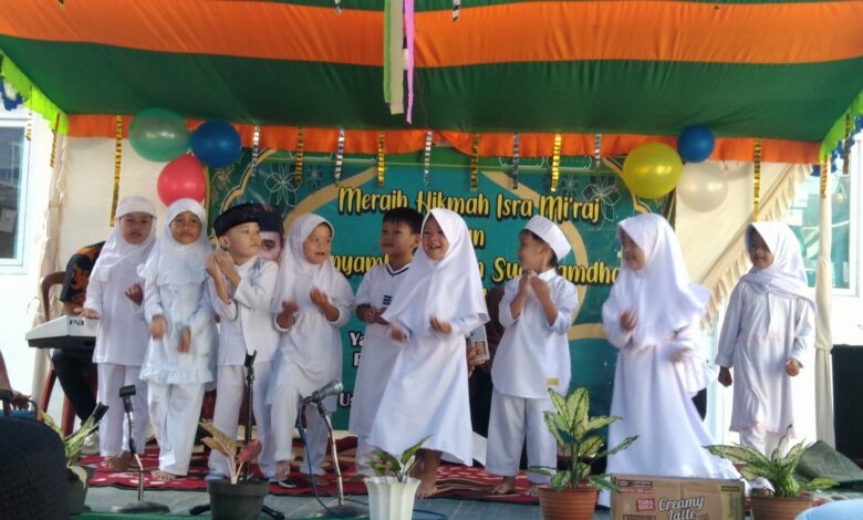 Dengan mengusung tema “meraih Hikmah Isra’ Mi’raj untuk Meningkatkan Kualitas Ibadah kepada Allah serta Menyambut Bulan Suci Ramadhan 1444 H.” Kegiatan dimulai pada pukul 07.00 WIB dengan tampilan kreasi dari berbagai jenjang pendidikan, mulai dari Taman Pendidikan Al-Qur’an (TPA ), Pendidikan Anak Usia Dini (PAUD), Madrasah Tsanawiyah (MTs), dan para guru-guru.