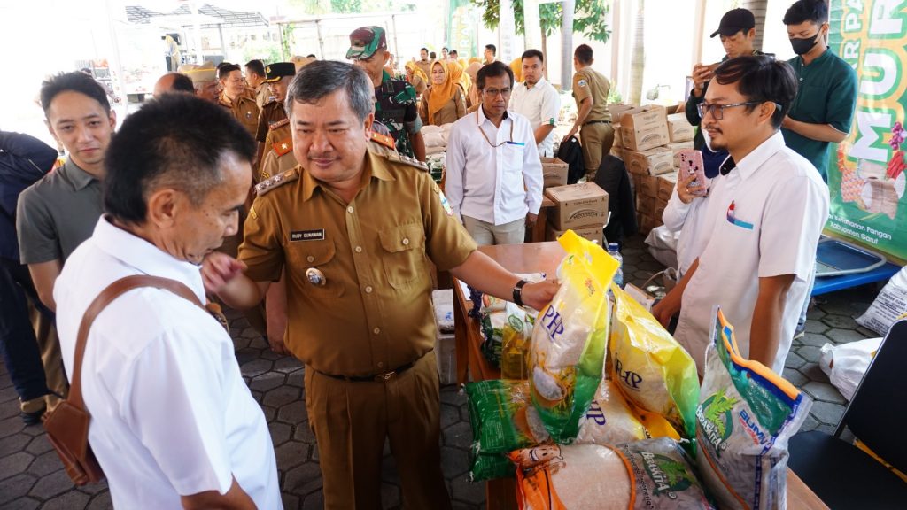 FAJARNUSANTARA.COM, Garut – Badan Pangan Nasional (Bapanas) mengadakan Gerakan Pangan Murah (GPM) secara serentak di seluruh Indonesia, termasuk di Kabupaten Garut bersama Dinas Ketahanan Pangan (DKP) Kabupaten Garut. Pelaksanaan GPM di Kabupaten Garut dilakukan di halaman Kantor DKP Garut dengan kehadiran Bupati Garut, Rudy Gunawan.