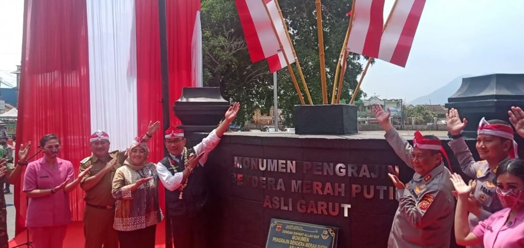 FAJARNUSANTARA.COM.- Gubenur Jawa Barat bersama Kapolda Jabar resmikan Monumen Pengrajin Bendera Merah Putih di Alun-alun Kecamatan Leles Kabupaten Garut, Senin (22/8)