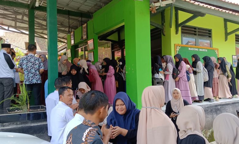 FAJARNUSANTARA.COM, Cimalaka – Menjelang libur Ramadan 1445 H, seluruh guru dan siswa Madrasah Aliyah Negeri (MAN) Sumedang di Cimalaka jalin silaturrahmi dengan saling bersalaman setelah pelaksanaan kegiatan Ramadan berakhir.