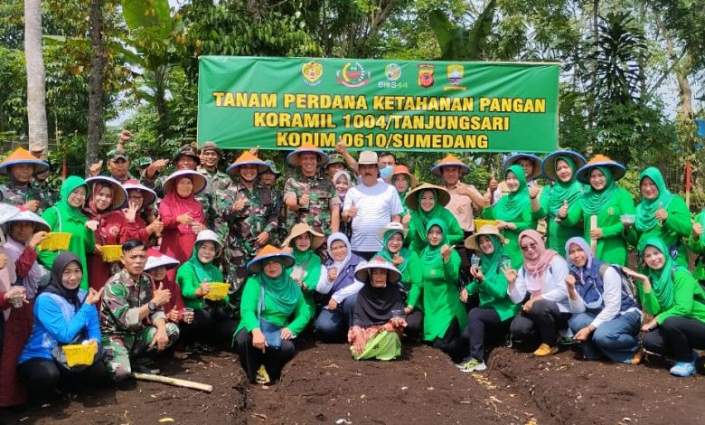 FAJARNUSANTARA.COM, – Tanam Perdana Ketahanan Pangan Koramil 1004/Tanjungsari Kodim 0610/ di tanah milik H.Umuh Muchtar Dusun Ciluluk Desa Margajaya Kecamatan Tanjungsari Kabupaten Sumedang dibuka Dandim 0610/Sumedang dan H.Umuh Muchtar.