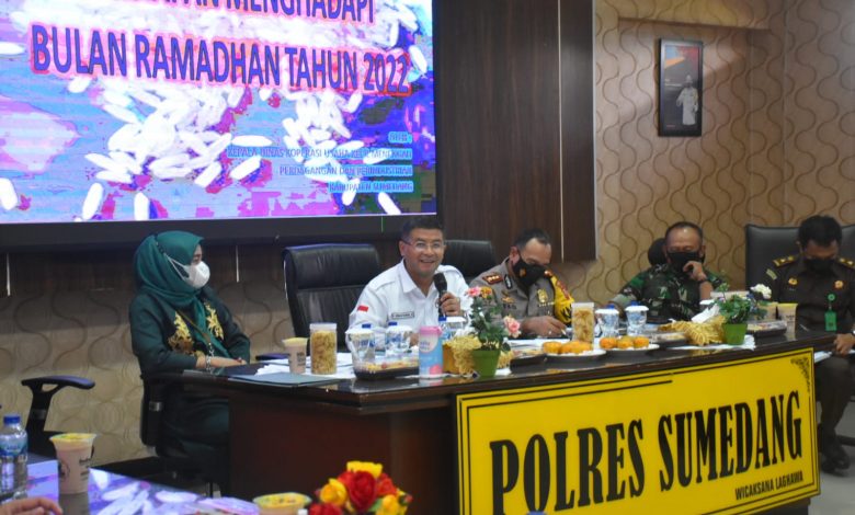 FAJARNUSANTARA.COM, SUMEDANG –Forkopimda Sumedang melaksanakan rapat koordinasi (Rakor) membahas ketersediaan pangan menjelang Ramadan 1443 H dipastikan aman di Aula Tribrata Polres Sumedang, Jumat (1/4).