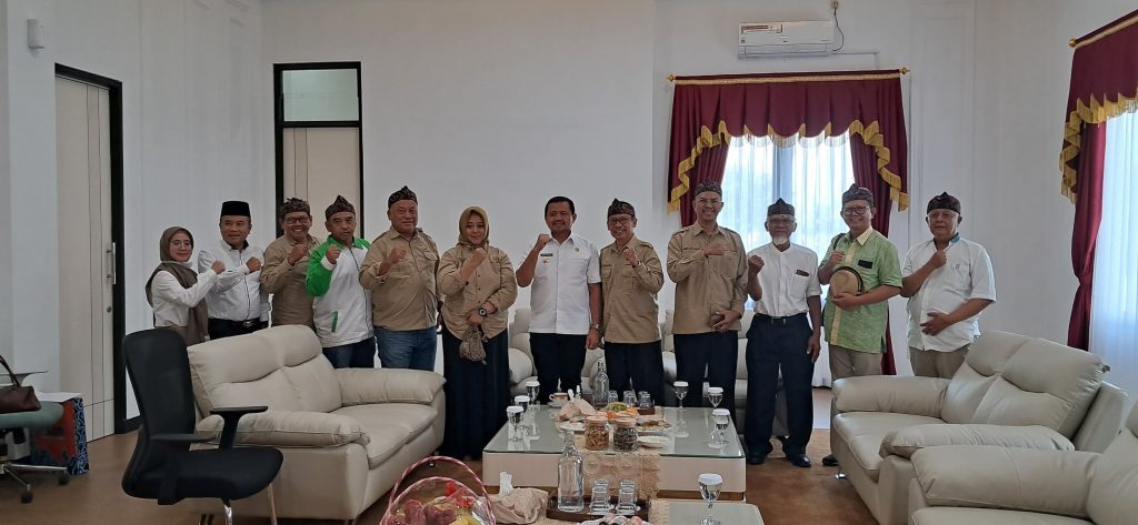 FAJARNUSANTARA.COM – Bupati Sumedang Dony Ahmad Munir menerima kunjungan jajaran Dewan Pengurus Cabang (DPC) Himpunan Kerukunan Tani Indonesia (HKTI) Kabupaten Sumedang di ruang kerjanya, Rabu, 23 Juli 2025. Pertemuan tersebut membahas penguatan komunikasi antara petani dan pemerintah serta sejumlah isu strategis di sektor pertanian.