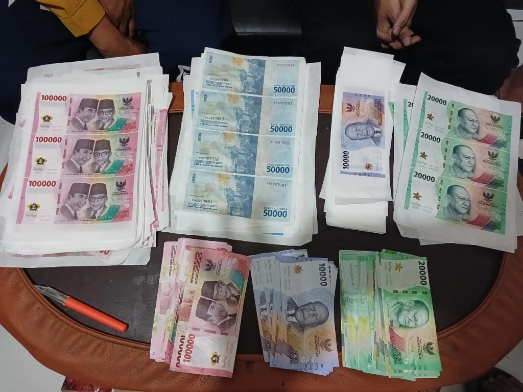 “Total barang bukti yang kami amankan meliputi 16 lembar uang palsu pecahan Rp 100 ribu, 88 lembar uang palsu pecahan Rp 20 ribu, 20 lembar uang setengah jadi pecahan Rp 10 ribu, 116 lembar uang setengah jadi pecahan Rp 100 ribu,” paparnya.