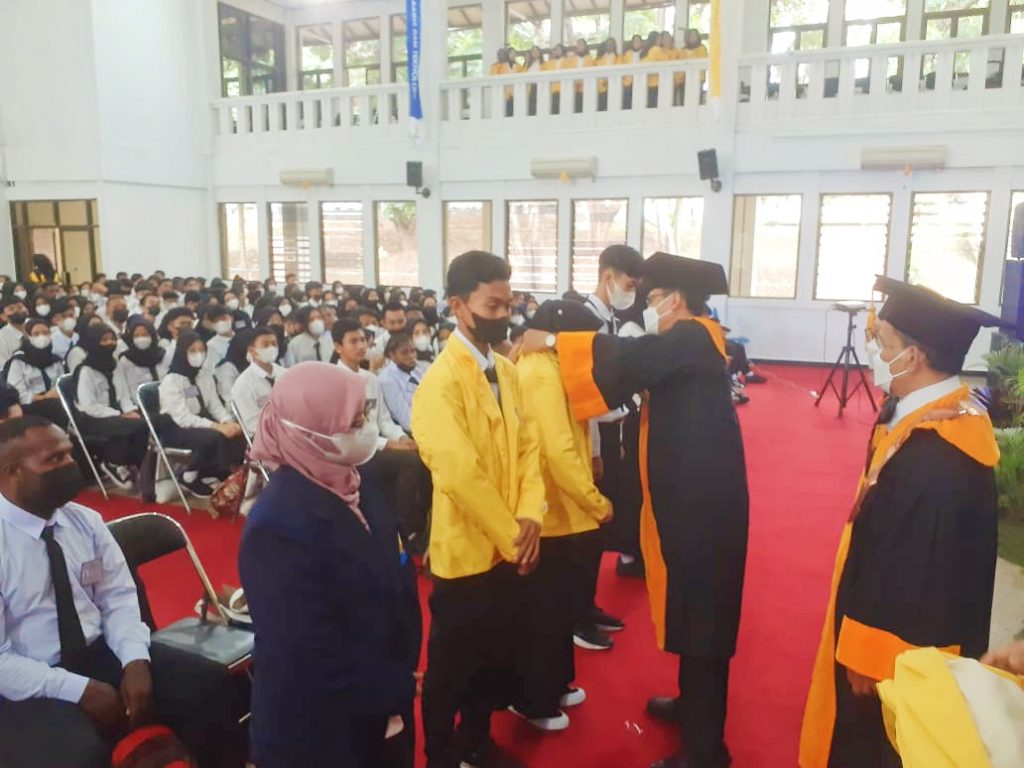 Selanjutnya dalam pantauan awak media , pelantikan mahasiswa baru oleh Dekan Fakultas Sains dan Teknologi serta Dekan Fakultas Ekonomi dan Bisnis secara simbolis dengan memakaikan jas almamater serta menyematkan syal kepada perwakilan mahasiswa baru.