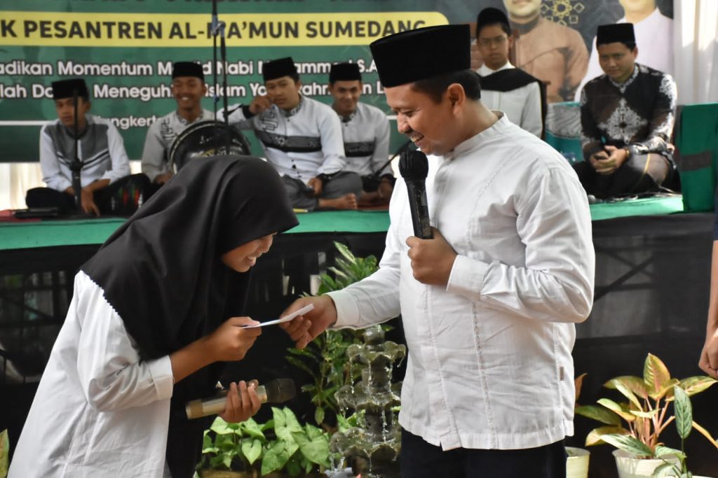 Pesan itu disampaikan bupati saat menghadiri peringatan Maulid Nabi Besar Muhammad SAW 1444 H di Yayasan Islam Al-Ma’mun Dusun Gunungdatar Desa Gunturmekar Kecamatan Tanjungkerta, Sabtu (15/10/ 2022).