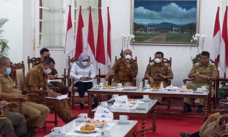 KETUA DPRD Sumedang Irwansyah Putra dan Ketua Komisi I Asep Kurnia, S.H, M.H menghadiri Rapat Koordinasi Forkopimda dalam rangka Penanganan Covid-19, di Gedung Negara Sumedang, Senin Sore (14/02/2022).