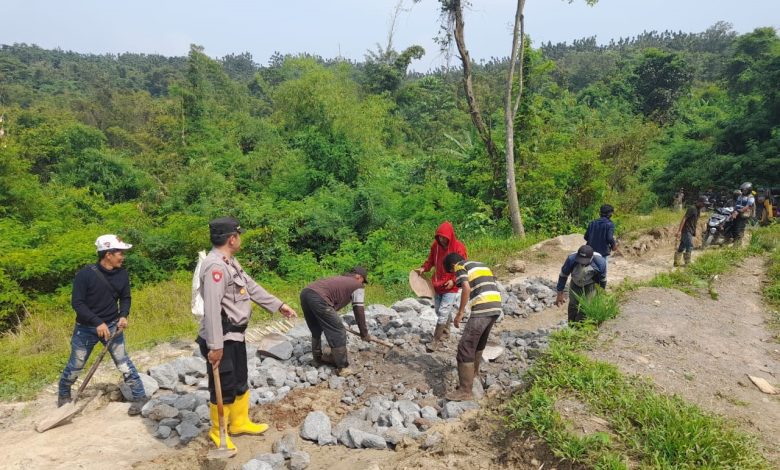 FAJARNUSANTARA.COM,- Jalan Blok Haurpapak Desa Surian Kecamatan Surian yang Rusak Berat diperbaiki Warga warga, kekompak diperlihatkan bersama Polsek Surian untuk bergotong royong. Jum’at (21/4/23).