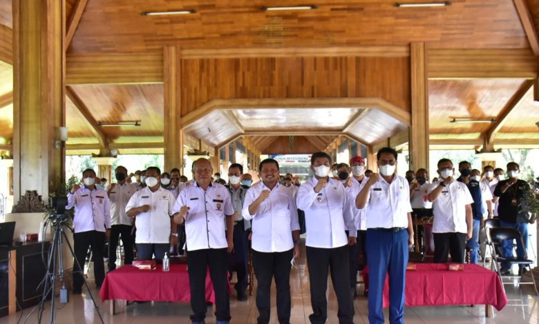 Selain Bupati dan Wakil Bupati, hadir pula narasumber pembinaan, diantaranya Kepala Pusat Dokumentasi dan Jaringan Hukum Nasional pada Badan Pembinaan Hukum Nasional (BPHN) dan Sekda Kabupaten Sumedang Herman Suryatman yang hadir melalui zoom meeting, serta Asisten Sekda Bidang Pemerintahan dan Kesejahteraan Rakyat Iwa Kuswaeri dan Kepala Bagian Hukum Setda Dodi Yohandi. (rls/ESH).