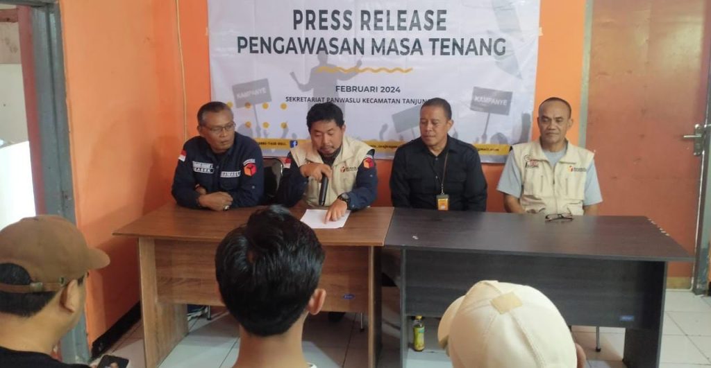 Imam Wahyu saat melakukan press release di Sekretariat Panwaslu Kecamatan Tanjungsari, Sabtu (9/2/2024).
