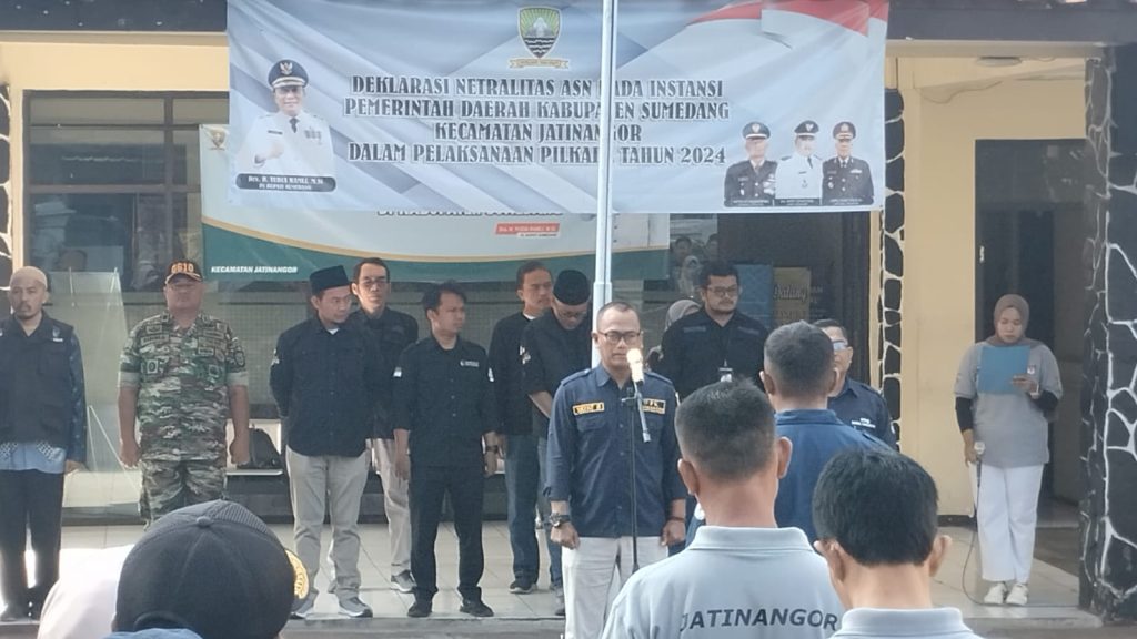 FAJARNUSANTARA.COM- Apel Kesiapsiagaan Pengawas Pemilu Kecamatan (PPK) Jatinangor digelar oleh penyelenggara Pemilihan Calon Gubernur dan Bupati Sumedang 2024 di halaman kantor Kecamatan Jatinangor.