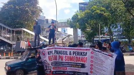 Koordinator lapangan aksi, Daffa Aditya, menyatakan pihaknya mendesak Komisi Pemberantasan Korupsi untuk segera bertindak tegas.