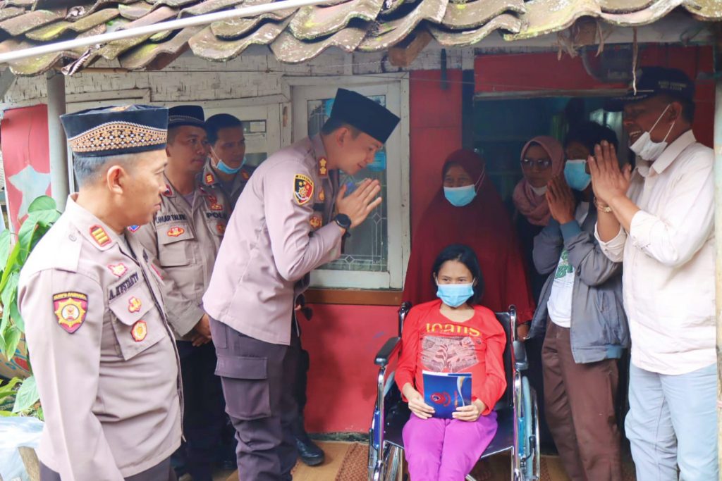 “Kegiatan ini kami lakukan dalam rangka Jumat Barokah kami dari Polres Garut akan memberikan bantuan kursi roda untuk teh Siti yang mengalami polio sejak lahir,” ucap Kapolres Garut