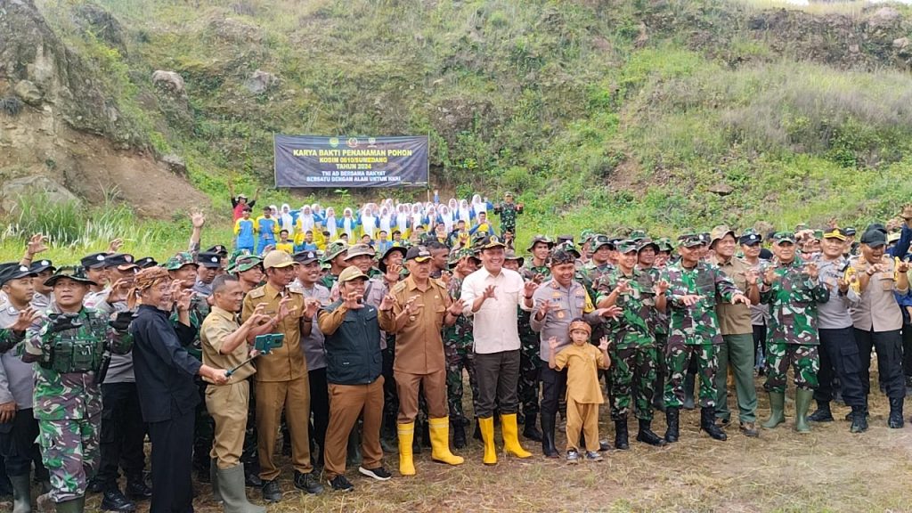 “Hari ini, lebih dari 2000 pohon jenis keras ditanam di lahan kritis kaki Gunung Geulis Jatiroke, melibatkan unsur Kodim 0610 Sumedang, anggota Polres Sumedang, organisasi masyarakat, pelajar, dan lainnya,” ujar Dandim.